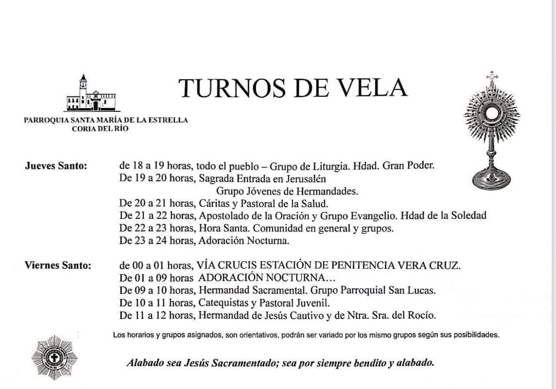 HORARIO DE LA SEMANA DE SEMANA SANTA.